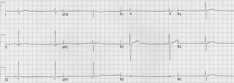 A normal sinus rhythm reflects a heart rate of 60-100 bpm with no abnormalities in any ECG leads; a peaked QRS complex with a preceding P wave, and ends with a T wave.