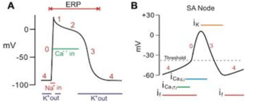 (B) Pacemaker cells (SA/AV nodes) – automaticity, phases 4, 0, 3